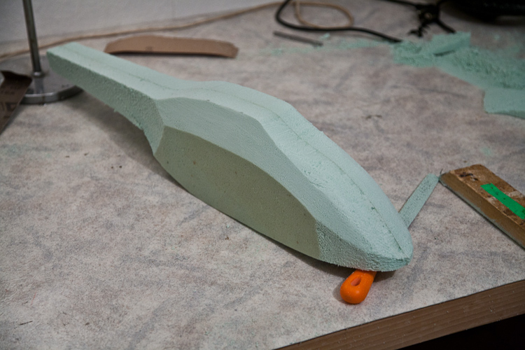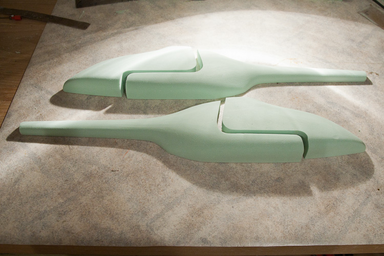 Aus einer Styrodurplatte werden damit zwei Formhälften ausgesägt